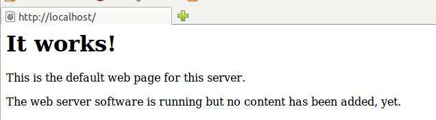 4. Jika sudah terinstall, maka pada browser akan tampil "it works!" jika diketikkan localhost. Akan didapat tampilan seperti gambar dibawah ini :